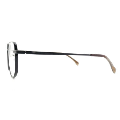 O quadro óptico de titânio é a escolha perfeita para quem procura um par de óculos leves.O quadro óptico de titânio é perfeito para aqueles que querem um par de óculos confortáveis que não os sobrecarregueA brilhante cor do quadro prateado dá aos óculos um visual sofisticado, enquanto a largura da lente de 50 mm se adapta a homens e mulheres.